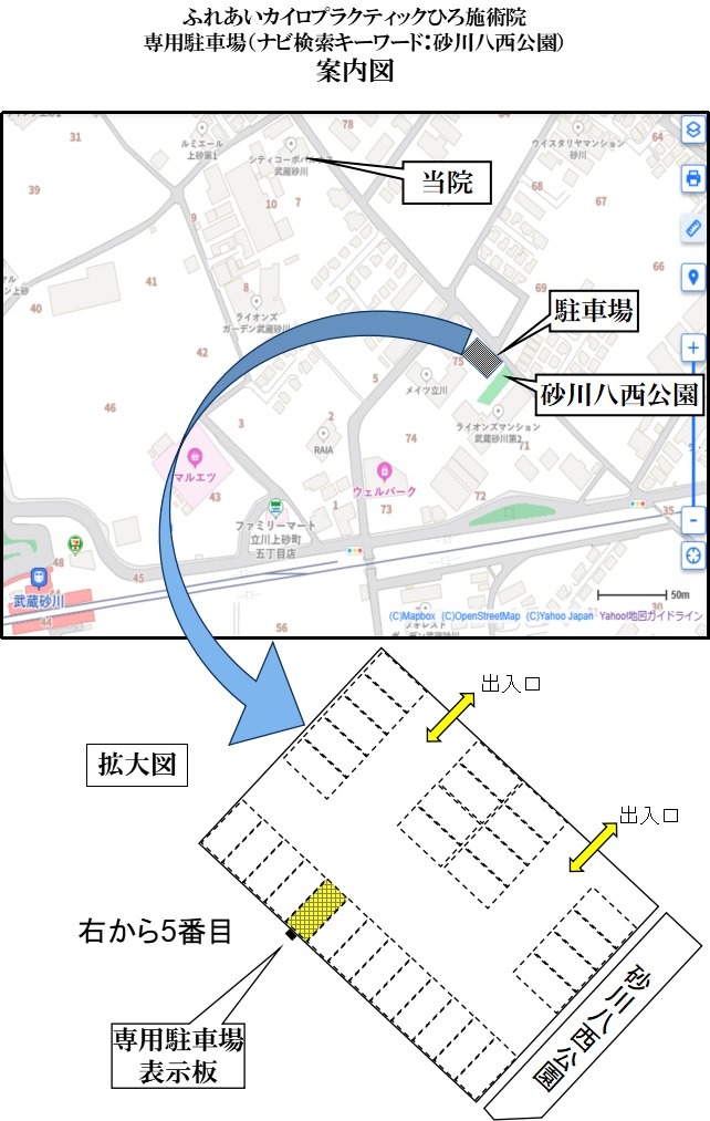 駐車場のご案内【武蔵砂川駅近・ふれあいカイロプラクティックひろ施術院】
